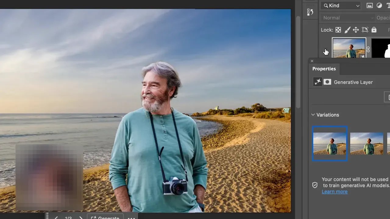 Photoshop Beta introduce un model generativ Fill and Expand îmbunătățit, capabil de generări mai realiste la rezoluții 2K și de creare credibilă a animalelor și oamenilor. Rezultatele evoluează rapid între versiuni ale modelului; uneori primele versiuni sunt inexacte, dar ultimele iterații sunt impresionante.